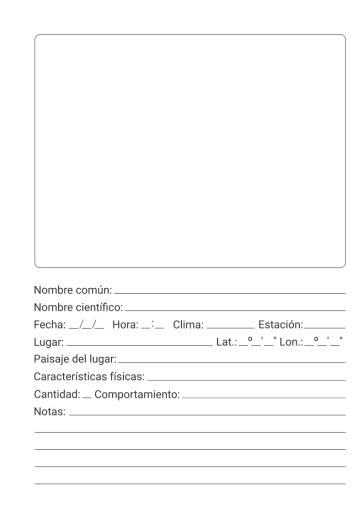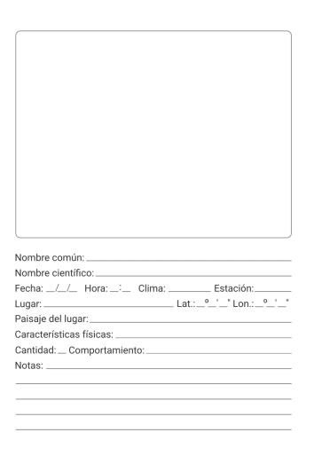 En cada hoja para avistamiento encontrarás:
