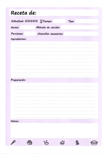 Escritura Cómoda: Con 10 renglones bien espaciados en las secciones de ingredientes y preparación, tienes el espacio perfecto para escribir cómodamente todo lo que necesitas.